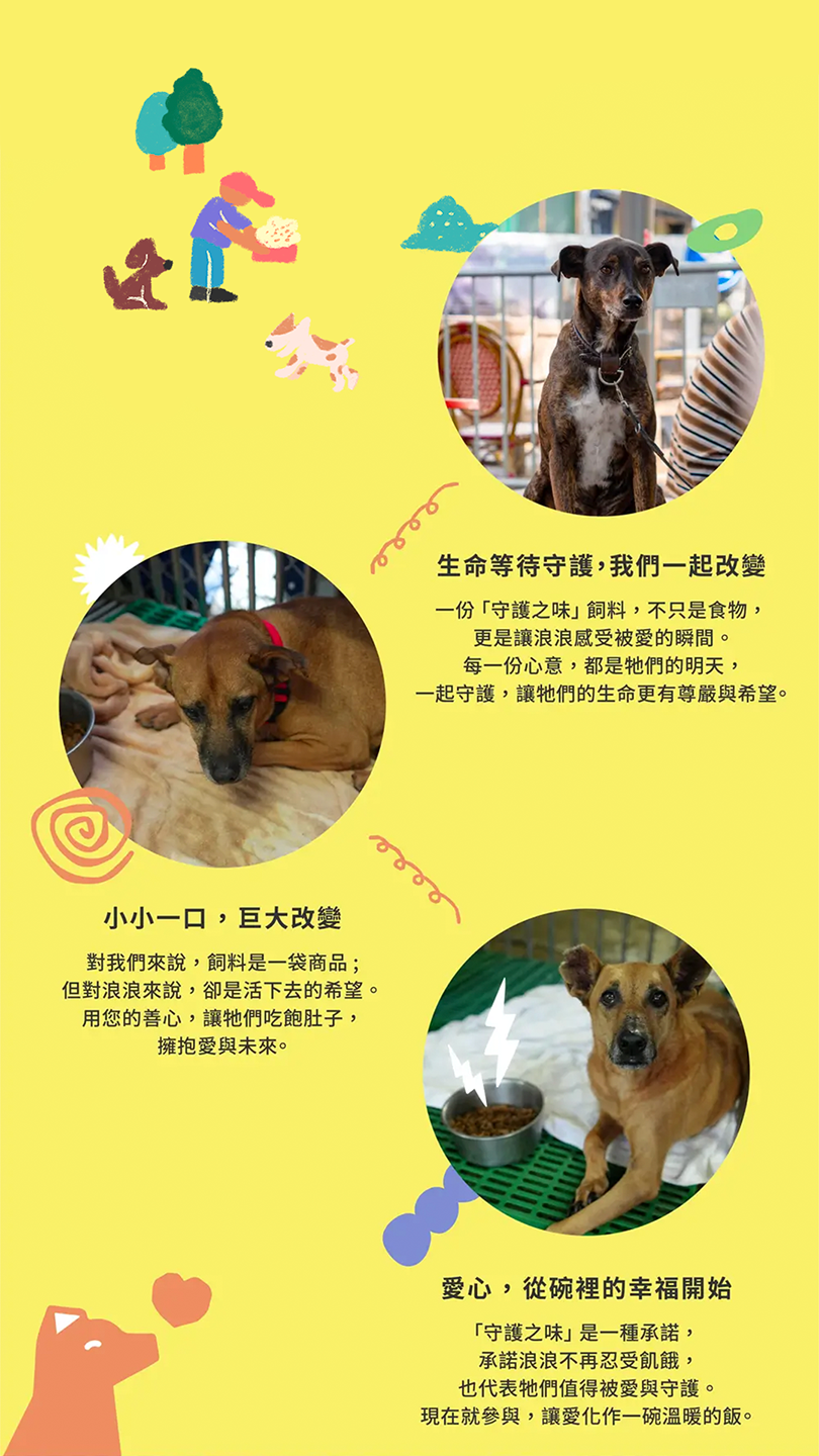 不僅是⼀份飼料,「守護之味」更是為浪浪送上的愛與希望。您的每⼀次選擇,都是對牠們未來的守護與承諾。立即⾏動,為牠們帶來溫暖的⽣活吧!